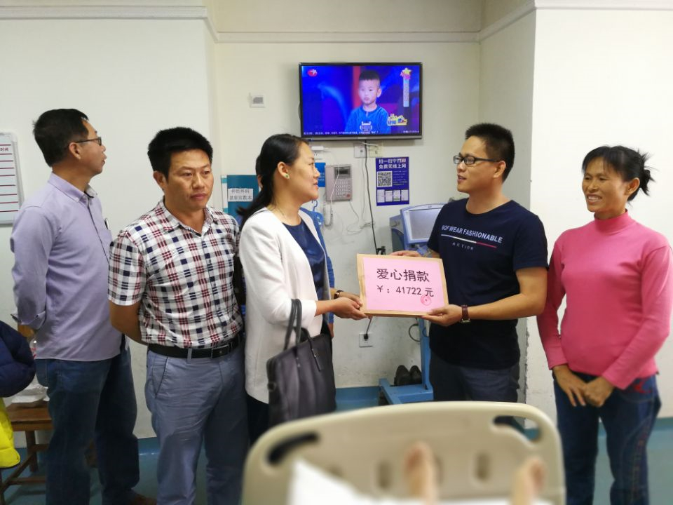 作為一家有社會責任心的企業(yè),綠港集團董事長、總經(jīng)理龔國強一直把“以人為本,關愛員工”這一核心文化理念落到實處,他告訴工會主席黃麗琴:“一定要叮囑家屬全力救治吳海有,廣泛發(fā)動職工為吳海有同志捐款!” 一場愛心捐助活動拉開帷幕。
