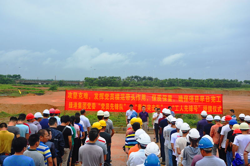 當天,細雨蒙蒙,綠港集團黨委書記、董事長、總經理龔國強在項目現(xiàn)場給參建黨員授予了“黨員先鋒隊”旗幟,給參建團員青年授予了“青年突擊隊”旗幟,綠港集團副總經理、工會主席黃麗琴給吳圩空港經濟區(qū)重點項目推進組授予了“工人先鋒號”錦旗,激勵廣大黨員干部青年同志們要以強烈的政治責任感、立足本職崗位,充分發(fā)揚不怕吃苦、勇于負重,敢打硬仗、能打硬仗的“綠港鐵軍”優(yōu)良傳統(tǒng),為吳圩空港經濟區(qū)項目建設做貢獻。