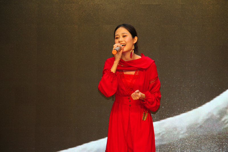 集團(tuán)領(lǐng)導(dǎo)班子成員、總經(jīng)理助理上臺(tái)演唱《心會(huì)跟愛(ài)一起走》