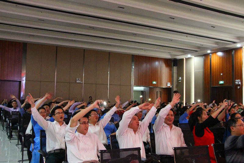 臺(tái)下觀眾熱情高漲,展現(xiàn)集團(tuán)公司全體員工團(tuán)結(jié)一心的良好風(fēng)貌