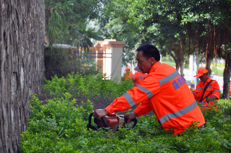 在南寧經(jīng)開區(qū)的市政道路綠化、科教文衛(wèi)事業(yè)項目、公共建筑等項目中,隨處可以看到綠港集團下屬榮鑫公司綠化工人忙碌的身影,他們身著橘紅色的工作服,頭戴安全帽,用勤勞和智慧筑夢綠城南寧,深耕于南寧經(jīng)開區(qū)的城市園林綠化領(lǐng)域,爭當南寧經(jīng)開區(qū)綠色建設(shè)“排頭兵”。