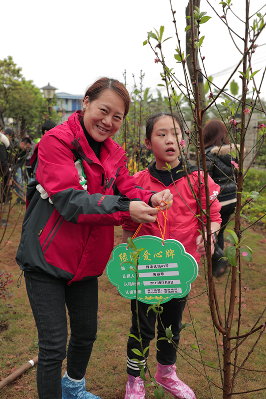 當天,綠港集團還舉行了植樹護綠活動。在細雨紛飛中,家長和孩子們一起動手,分工協(xié)作。大家栽得認真,干得賣力,揮鍬鏟土、挖坑、栽樹、蓋土、澆水,各個環(huán)節(jié)銜接有序,配合默契。整個植樹活動現(xiàn)場熱火朝天,歡聲笑語不絕于耳。經過一個多小時的揮汗奮戰(zhàn),上百棵小樹苗整齊的“站”在了綠港·國際中心桃樹林中。放眼望去,樹苗迎風挺立、搖曳生姿,大家看著這一片自己親手種下的樹苗,無不露出幸福的笑容,紛紛與小樹苗合影。綠港集團下屬榮鑫公司副總經理唐欽月表示:“植樹造林是一項利于當代、造福子孫的偉大工程。綠港集團成立五年來,每年都積極組織員工開展義務植樹造林活動。今天我們帶上孩子一起參加義務植樹活動,不僅增強了職工們生態(tài)環(huán)境保護的責任感,也給孩子們樹立了關心、愛護以及主動參與家園建設的意識和榜樣?!?nbsp;