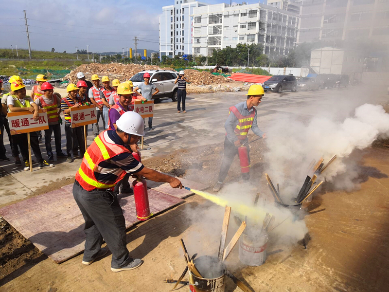 激烈的比賽結(jié)束后,消防應(yīng)急演練活動開始了。當(dāng)聽到“起火啦”的大喊聲,全體人員井然有序的進行了逃生演習(xí)。伴隨著濃濃的煙霧,每個人捂著“濕毛巾”,沿著樓梯靠右一個接一個的快速撤離。當(dāng)全體人員走出廠房大門時,工作人員在空地上點燃了幾盆火焰。公司質(zhì)安部負責(zé)人講解了干粉滅火器的使用方法后,大家進行了踴躍的嘗試。在此次消防演習(xí)中,本著防患于未然的心態(tài),所有人員積極參與,專心聽講,既鞏固了消防安全知識,也提高了項目安全生產(chǎn)工作水平。