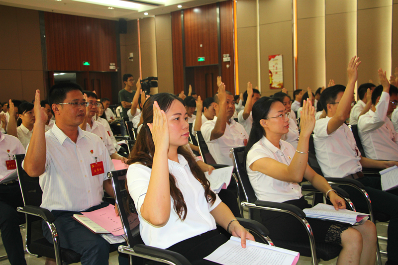 與會黨員聽取相關(guān)工作報(bào)告,并對報(bào)告事項(xiàng)進(jìn)行表決