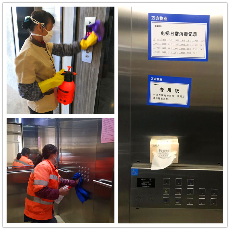 防疫物資到位后,萬方公司于1月30日及時安排人員將物資下發(fā)到各服務(wù)項(xiàng)目,同時在接管的綠港·國際中心、麗匯工業(yè)園、創(chuàng)意產(chǎn)業(yè)園、金凱工業(yè)園、銀凱孵化園、宏象工業(yè)園、現(xiàn)代工業(yè)園、吳圩新港家園等10余個項(xiàng)目全面開展疫情防控工作。由各項(xiàng)目主任帶頭領(lǐng)導(dǎo),多措并舉防控疫情。首先,對公廁、下水道、單元樓道、垃圾桶、綠植等容易滋生病菌的場所進(jìn)行消毒,重點(diǎn)對人員接觸頻繁的電梯、公共通道的門把手、開關(guān)、按鍵、健身器材等位置進(jìn)行每日1-2次的消毒滅菌工作。其次,嚴(yán)格落實(shí)園區(qū)進(jìn)出人員及車輛的管理和登記,共在各園區(qū)設(shè)置定點(diǎn)體溫檢測10處,嚴(yán)格開展入園人員體溫檢測,并進(jìn)行體溫異常人員登記,除現(xiàn)場進(jìn)行體溫檢測外,還在萬方公眾號小程序上推送各種防疫工作溫馨提示,提醒業(yè)主注意防疫措施并配合體溫監(jiān)測。再次,設(shè)置廢棄口罩回收點(diǎn)30個(每個園區(qū)視項(xiàng)目情況配2-3個點(diǎn)),回收廢棄口罩,防止病毒逸散。最后,深入園區(qū),做好業(yè)主和群眾的疫情防治宣傳,在各園區(qū)共懸掛疫情防控宣傳橫幅50條,將防護(hù)知識傳播到各家各戶,降低恐慌,為共同保障園區(qū)環(huán)境奠定良好的群眾基礎(chǔ)。