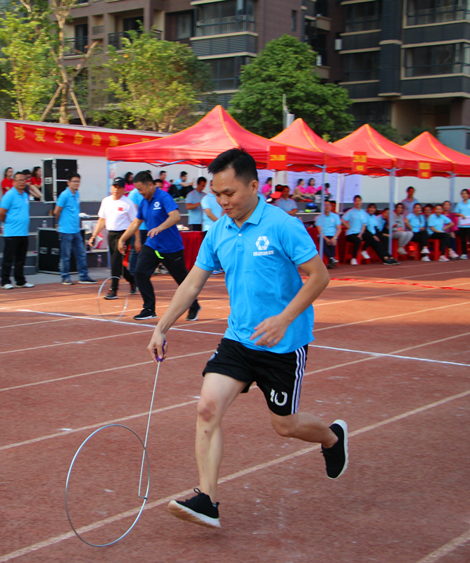 《滾鐵環(huán)》(科巨公司 盧艷芳)圖片說明:2019年綠港集團(tuán)”團(tuán)結(jié)杯“運(yùn)動(dòng)會(huì)上,職工們參加趣味項(xiàng)目滾鐵環(huán)
