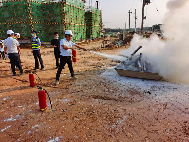 此次活動主要是模擬火災(zāi)發(fā)生后的應(yīng)急處置?;顒赢?dāng)天,發(fā)現(xiàn)險情后,安全員立即上報,并進行控制和處理,并播報消防疏散通知。在總指揮的安排下,安全防護組、滅火行動組、疏散救援組、通訊聯(lián)絡(luò)組同時行動。安全防護組立刻關(guān)閉總電源閘門;滅火行動組拿取就近的消防器材進行滅火;疏散救援組迅速引領(lǐng)工人從安全通道撤離到安全地點;通信聯(lián)絡(luò)組將現(xiàn)場情況及時反饋給總指揮和現(xiàn)場指揮。待火勢完全撲滅,所有人員到達(dá)預(yù)定安全地點,通訊聯(lián)絡(luò)組認(rèn)真清點人數(shù),確認(rèn)無任何人員傷亡及財產(chǎn)損失。演練結(jié)束后,項目部組織滅火器的實操練習(xí)。施工人員按照講解的動作要領(lǐng)使用了滅火器,對布置的“起火點”進行有效撲救。
