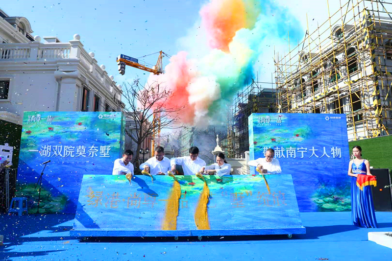 隨后,在現(xiàn)場(chǎng)嘉賓和客戶的見證和熱烈喝彩聲中,綠港集團(tuán)總經(jīng)理鄧?yán)^慧、綠港集團(tuán)副總經(jīng)理黃麗琴、綠港集團(tuán)副總經(jīng)理傅杰鋒、綠港集團(tuán)營(yíng)銷管理中心副總經(jīng)理林崇凱、嘉通公司副總經(jīng)理何小勇攜手上臺(tái),共同啟動(dòng)開放儀式,一幅美好生活的畫面由此鋪陳。
