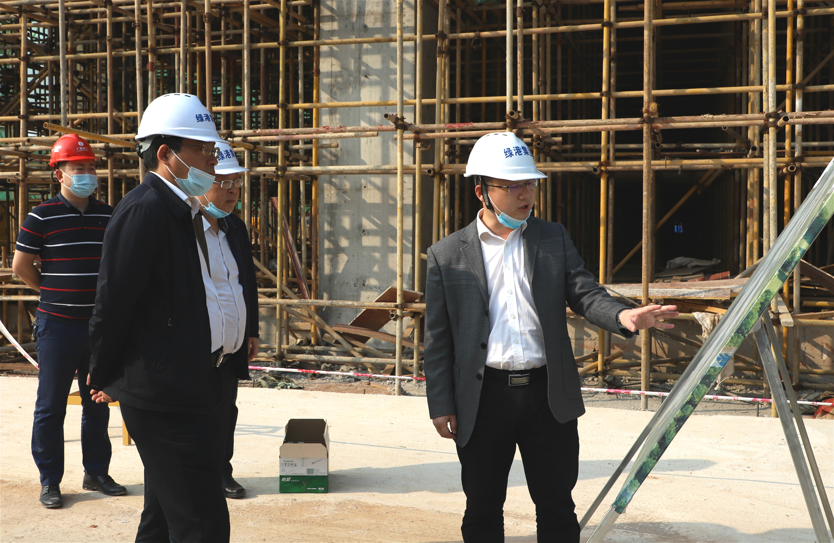 南寧市副市長朱會東到項目現(xiàn)場了解項目建設(shè)情況,綠港集團董事長龔國強陪同