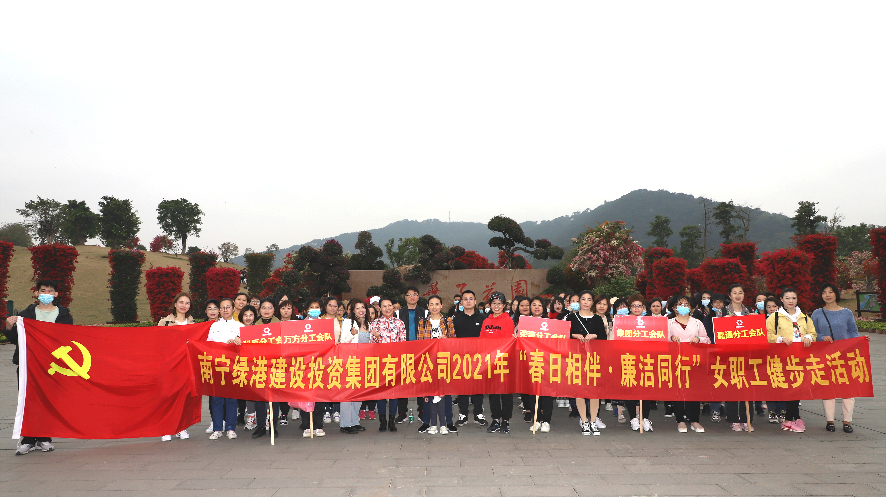 陽春三月,春意盎然。為慶祝第111個“三八”國際婦女節(jié),充分展示婦女職工積極進取、昂揚向上的巾幗風(fēng)采,弘揚“綠色運動”健康理念,倡導(dǎo)健康文明生活方式,3月8日,綠港集團黨委、綠港集團工會、綠港集團女工委在南寧青秀山共同舉辦“春日相伴·廉潔同行”健步走活動。集團公司黨委書記、董事長龔國強,集團公司黨委副書記、總經(jīng)理鄧?yán)^慧,集團公司黨委委員、副總經(jīng)理陸羿冰,集團公司黨委委員、副總經(jīng)理、工會主席黃麗琴,集團公司財務(wù)總監(jiān)關(guān)月娥出席活動。綠港集團全體管理崗位女職工及其親屬約130人參加。