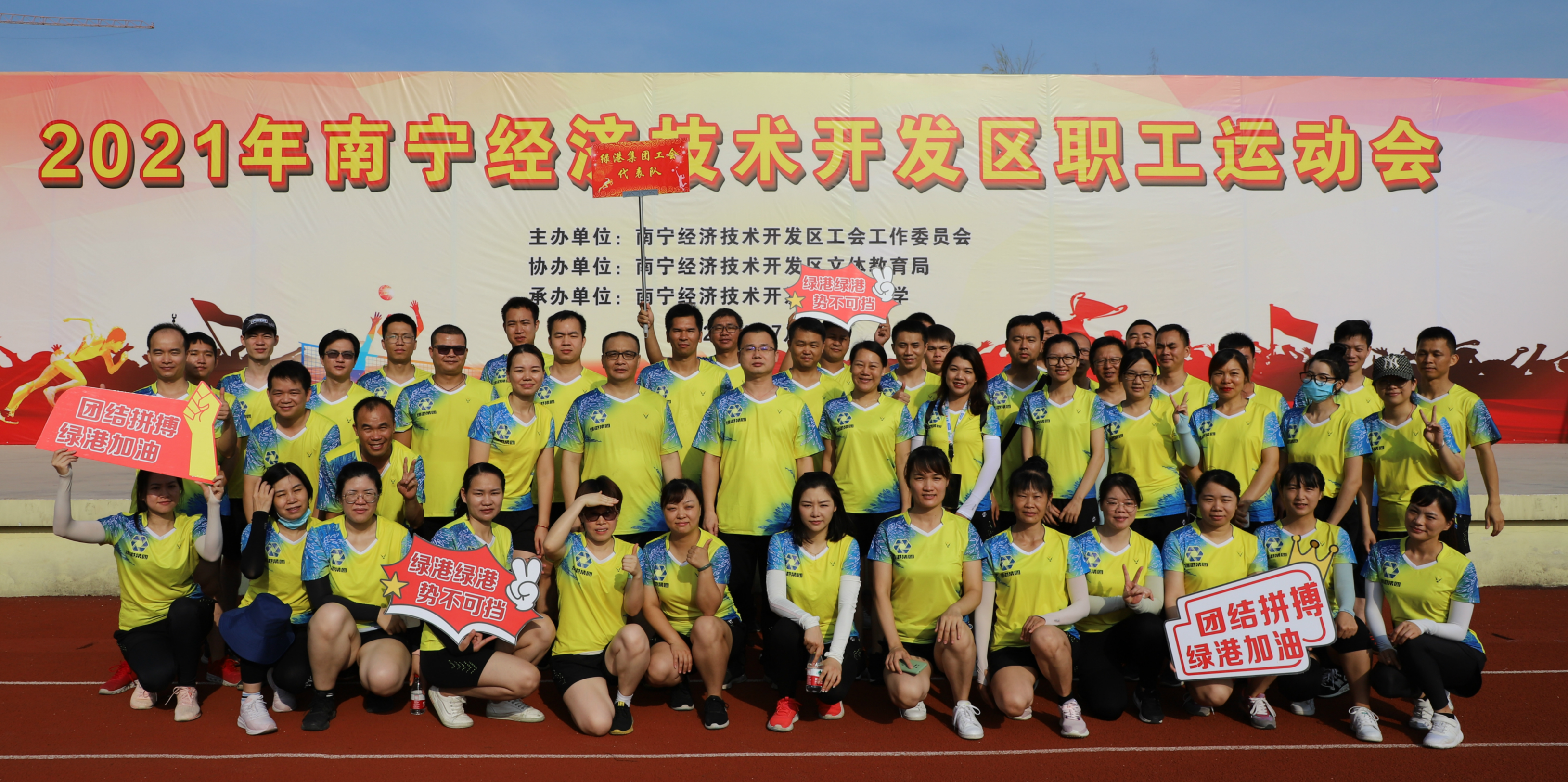7月17日,南寧經(jīng)濟(jì)技術(shù)開發(fā)區(qū)2021年職工運(yùn)動會在經(jīng)開區(qū)第一小學(xué)舉行。經(jīng)開區(qū)14支職工代表隊(duì)參加此次比賽,綠港集團(tuán)近70名職工代表參加比賽。
