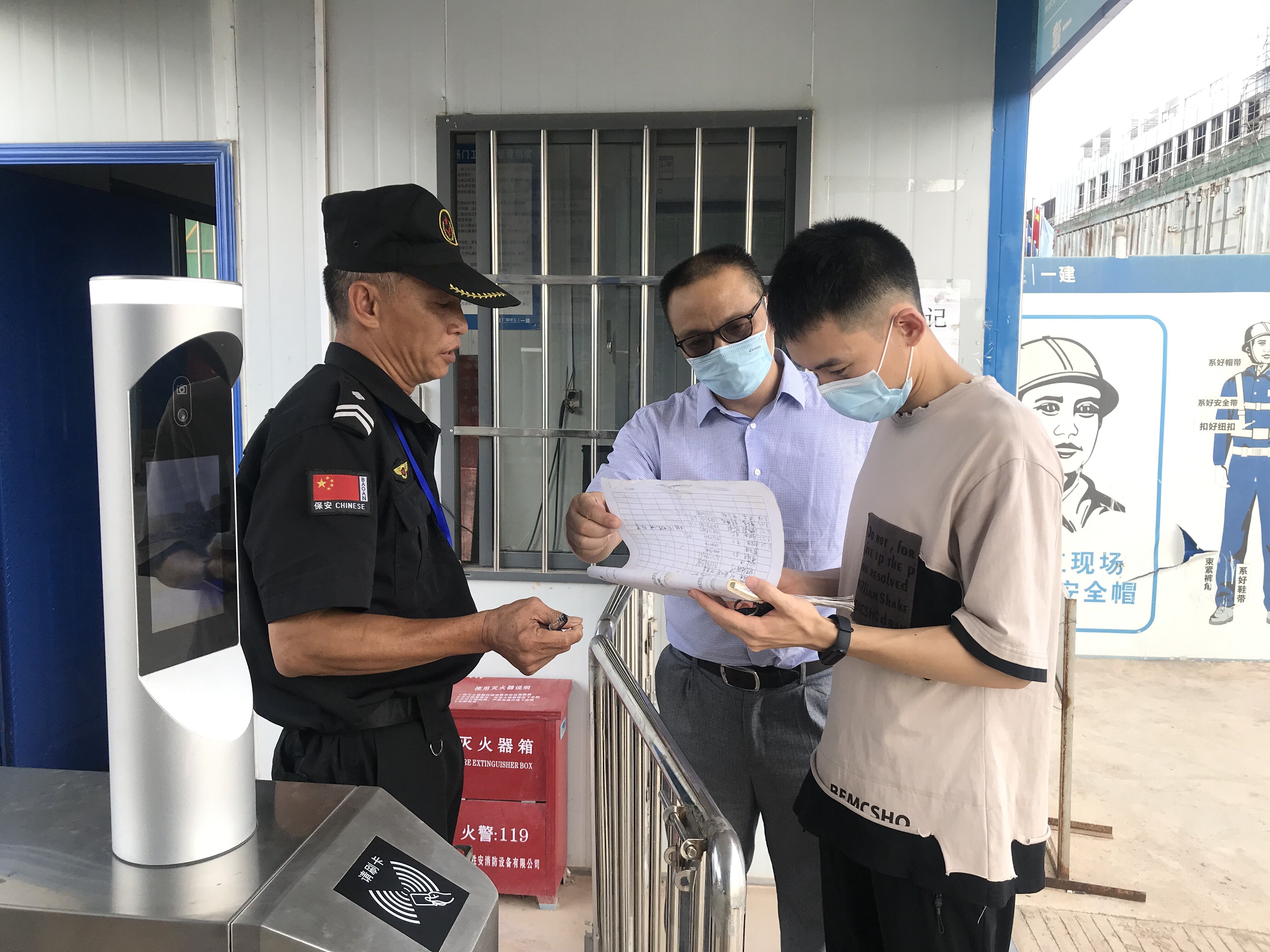 “請(qǐng)出示一下你們的來(lái)訪登記記錄......”近日,在綠港集團(tuán)金瑞產(chǎn)業(yè)城(二期)項(xiàng)目部入口,督查組工作人員正冒著酷暑開展疫情防控工作監(jiān)督檢查。當(dāng)看到該項(xiàng)目現(xiàn)場(chǎng)掃碼、測(cè)溫、佩戴口罩、實(shí)名登記等情況良好,監(jiān)督組不忘督促提醒一定要落實(shí)好項(xiàng)目工地疫情防控要求,以更有力措施、更嚴(yán)實(shí)作風(fēng),科學(xué)防控、精準(zhǔn)施策,毫不放松抓好疫情防控工作,牢牢守住項(xiàng)目一線安全健康底線。