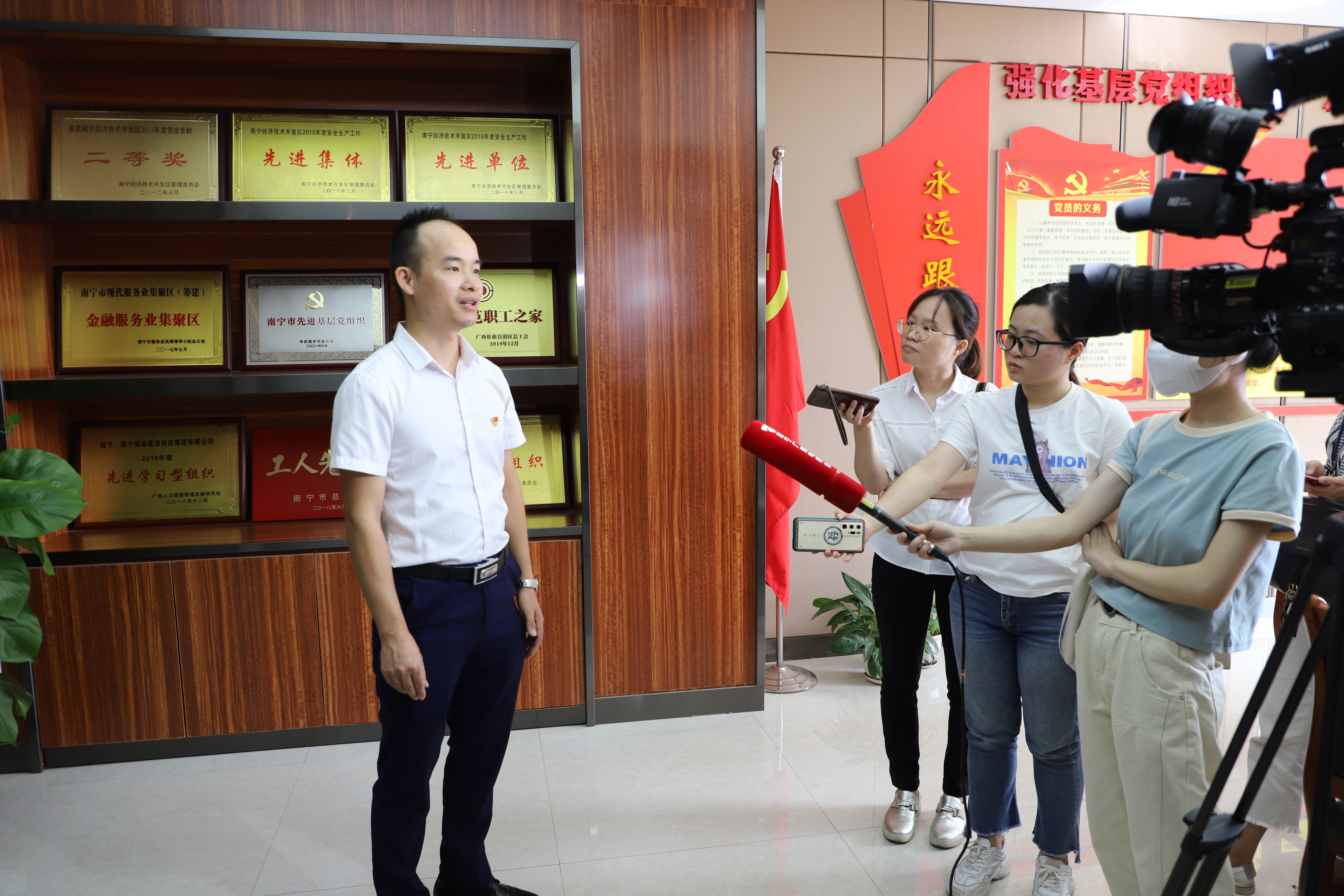 9月22日,南寧日報(bào)、南寧電視臺、南寧晚報(bào)及南寧新聞網(wǎng)記者來到綠港集團(tuán)對楊烈同志進(jìn)行了采訪,同時(shí)詳細(xì)了解綠港集團(tuán)深入開展學(xué)習(xí)強(qiáng)國學(xué)習(xí)活動提升黨員綜合素質(zhì)的經(jīng)驗(yàn)做法。他在接受采訪時(shí)表示:“‘學(xué)習(xí)強(qiáng)國’的內(nèi)容豐富多彩,涉及的面也很廣,為我們日常的學(xué)習(xí)提供了一個(gè)很好的平臺和內(nèi)容。‘學(xué)習(xí)強(qiáng)國’平臺為我們黨員提供了一個(gè)可移動的學(xué)習(xí)空間,大家可以隨時(shí)隨地進(jìn)行學(xué)習(xí),也可以根據(jù)自己的興趣愛好挑選板塊學(xué)習(xí)。在平臺上大家可以相互看到自己的積分和排名,無形中形成了一種相互監(jiān)督、相互鼓勵(lì)、你追我趕的學(xué)習(xí)氛圍。今后我將會一如既往通過‘學(xué)習(xí)強(qiáng)國’這個(gè)平臺提高理論水平,增強(qiáng)干事創(chuàng)業(yè)能力,為社會主義事業(yè)貢獻(xiàn)自己的綿薄之力。”