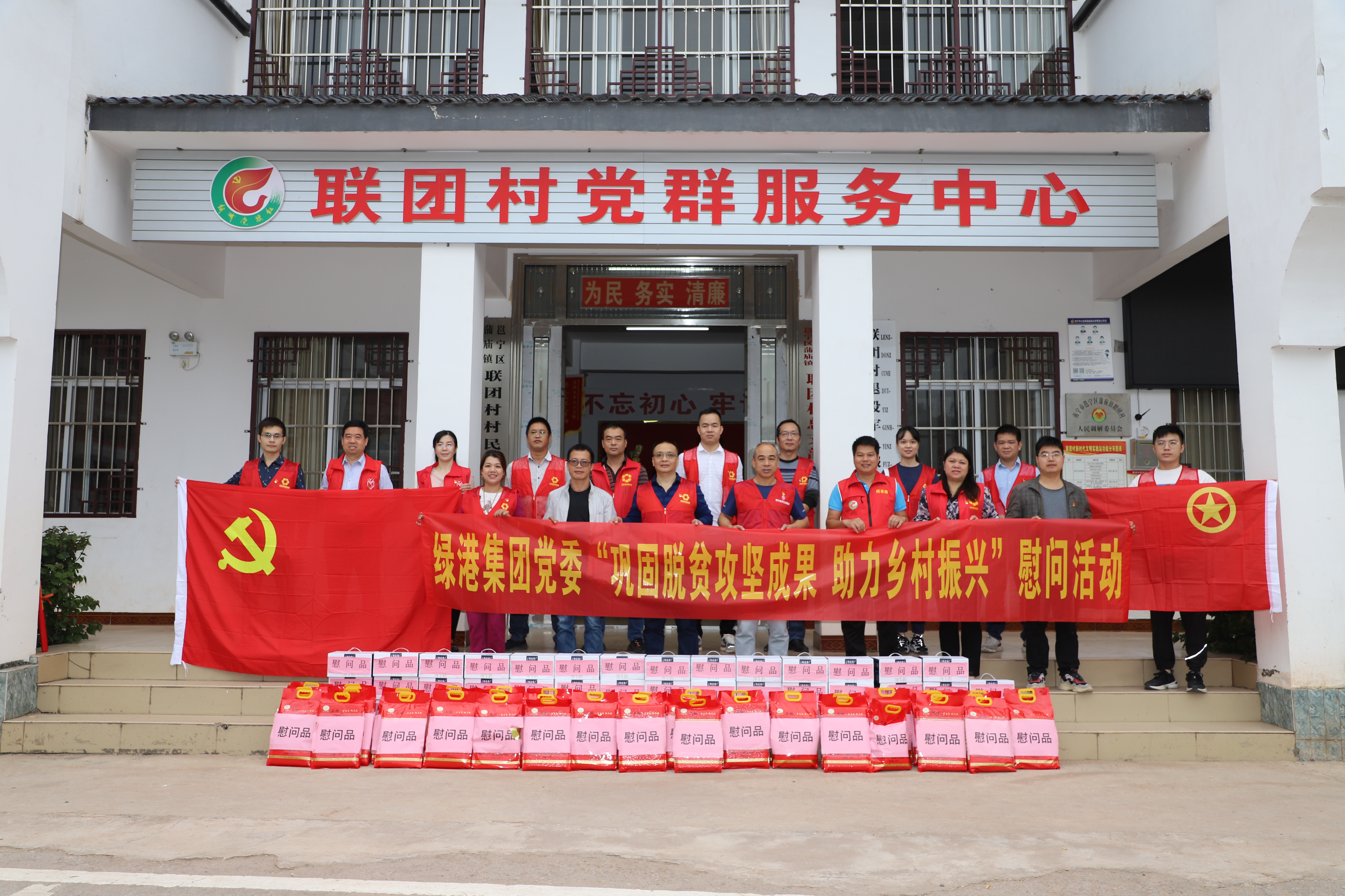 10月28日,綠港集團(tuán)黨委委員、紀(jì)委書(shū)記蘭赤壽帶領(lǐng)綠港集團(tuán)各黨支部、團(tuán)總支代表一行來(lái)到對(duì)口幫扶的邕寧區(qū)蒲廟鎮(zhèn)聯(lián)團(tuán)村開(kāi)展“鞏固脫貧攻堅(jiān)成果 助力鄉(xiāng)村振興”慰問(wèn)活動(dòng)。經(jīng)開(kāi)區(qū)綜治辦、生態(tài)環(huán)境局、蒲廟鎮(zhèn)聯(lián)團(tuán)村駐村第一書(shū)記何承遜以及聯(lián)團(tuán)村村干部參加了慰問(wèn)活動(dòng)。