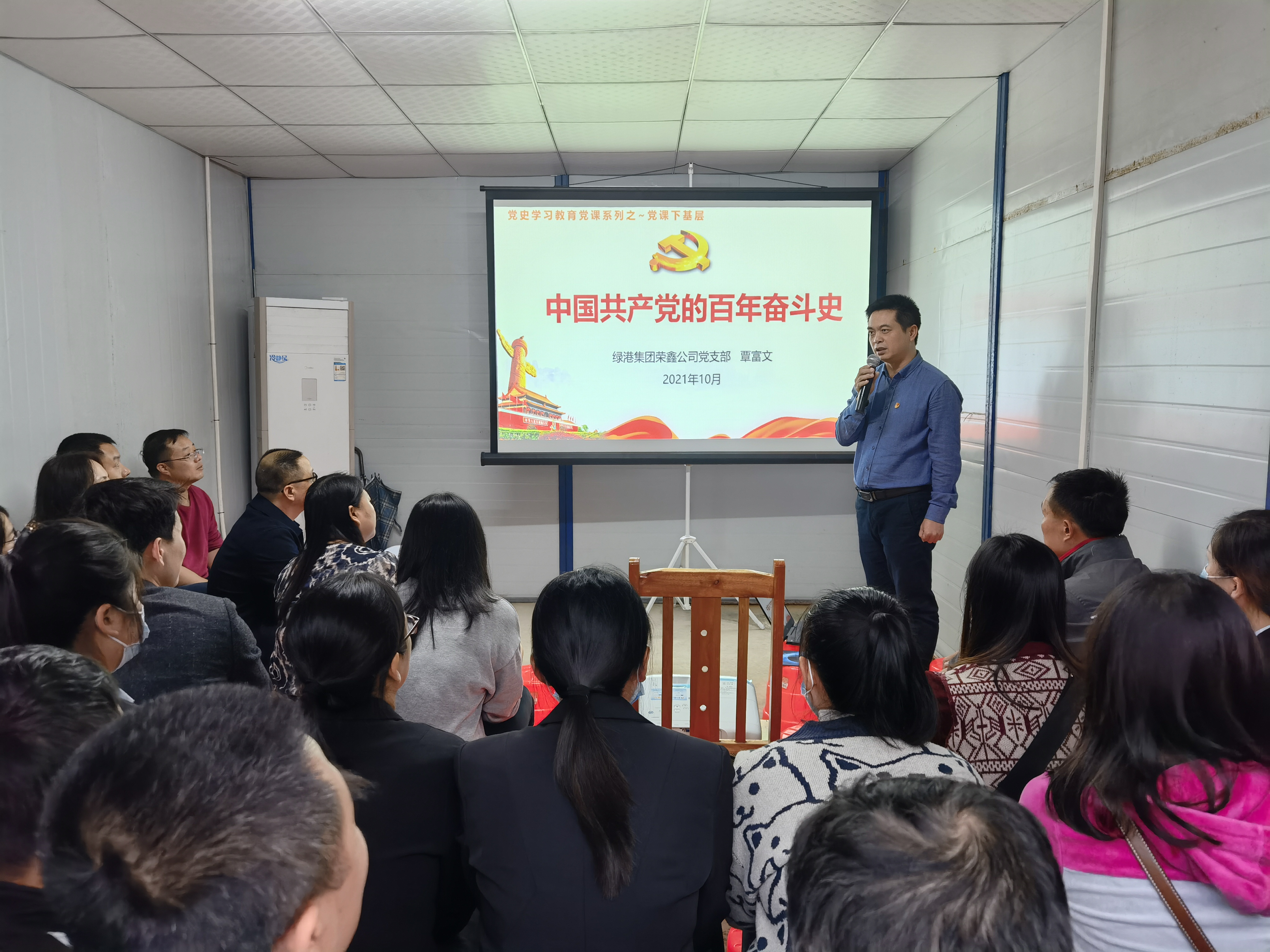 古有稻花香里說豐年,今有苗圃綠地講黨史。為持續(xù)深入開展黨史學(xué)習(xí)教育,讓黨史學(xué)習(xí)教育走深走實(shí),10月28日,榮鑫公司黨支部來到高嶺苗圃開展黨史學(xué)習(xí)教育“黨課下基層”活動(dòng),榮鑫公司黨支部委員、萬方公司副總經(jīng)理覃富文同志為榮鑫公司一線建設(shè)者、萬方公司一線客服等基層人員和榮鑫公司黨支部全體黨員帶來了題為《中國共產(chǎn)黨的百年奮斗史》的生動(dòng)黨史黨課,集團(tuán)黨委委員、紀(jì)委書記蘭赤壽也一起聆聽了這堂黨課。
