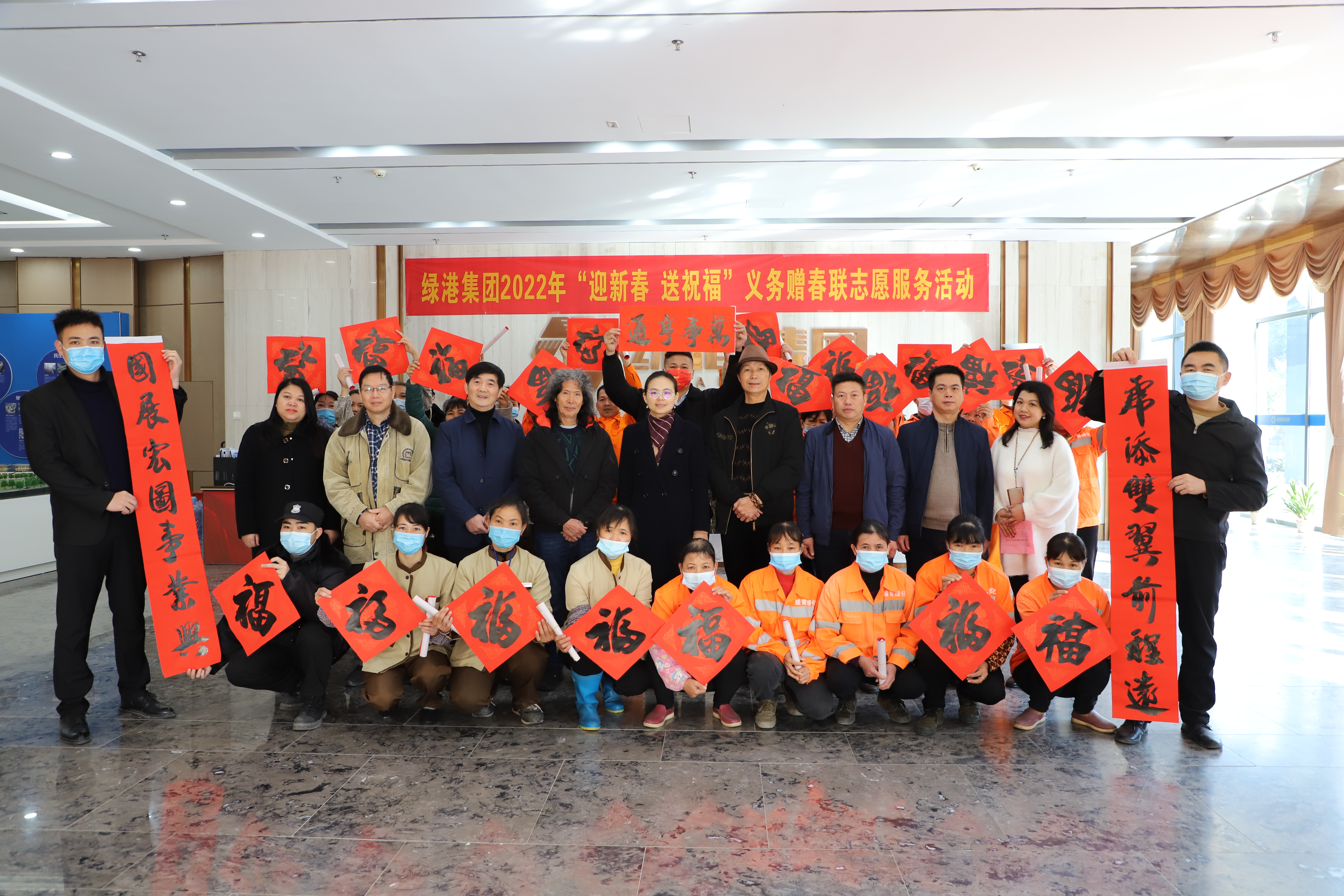 寫春聯(lián)送祝福,濃濃墨香迎新年。為弘揚(yáng)優(yōu)秀傳統(tǒng)文化,營造歡樂祥和、喜慶熱烈的濃厚節(jié)日氛圍,1月17日-19日,綠港集團(tuán)黨委、綠港集團(tuán)工會組織開展2022年“迎新春·送祝?!绷x務(wù)贈春聯(lián)志愿服務(wù)活動。