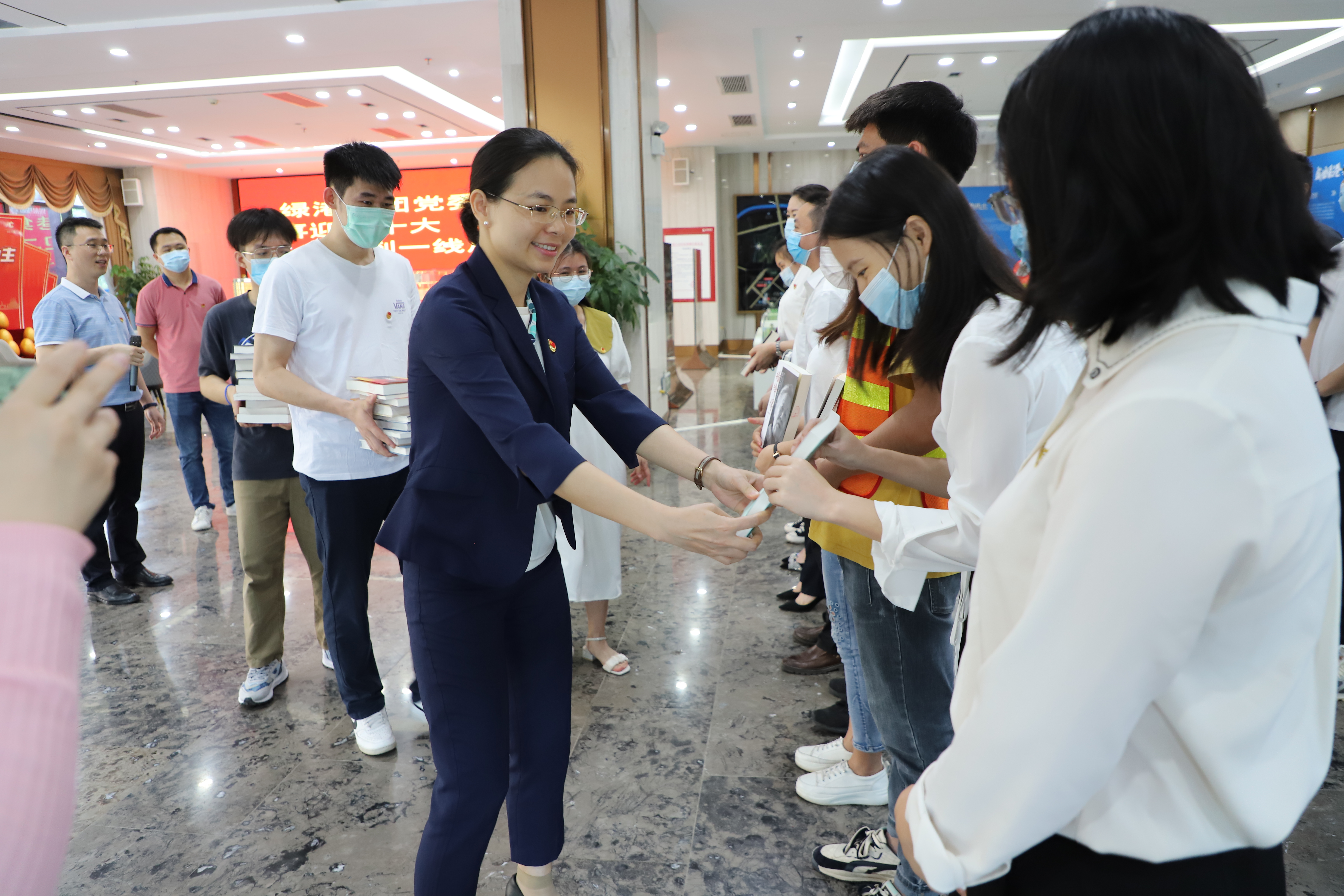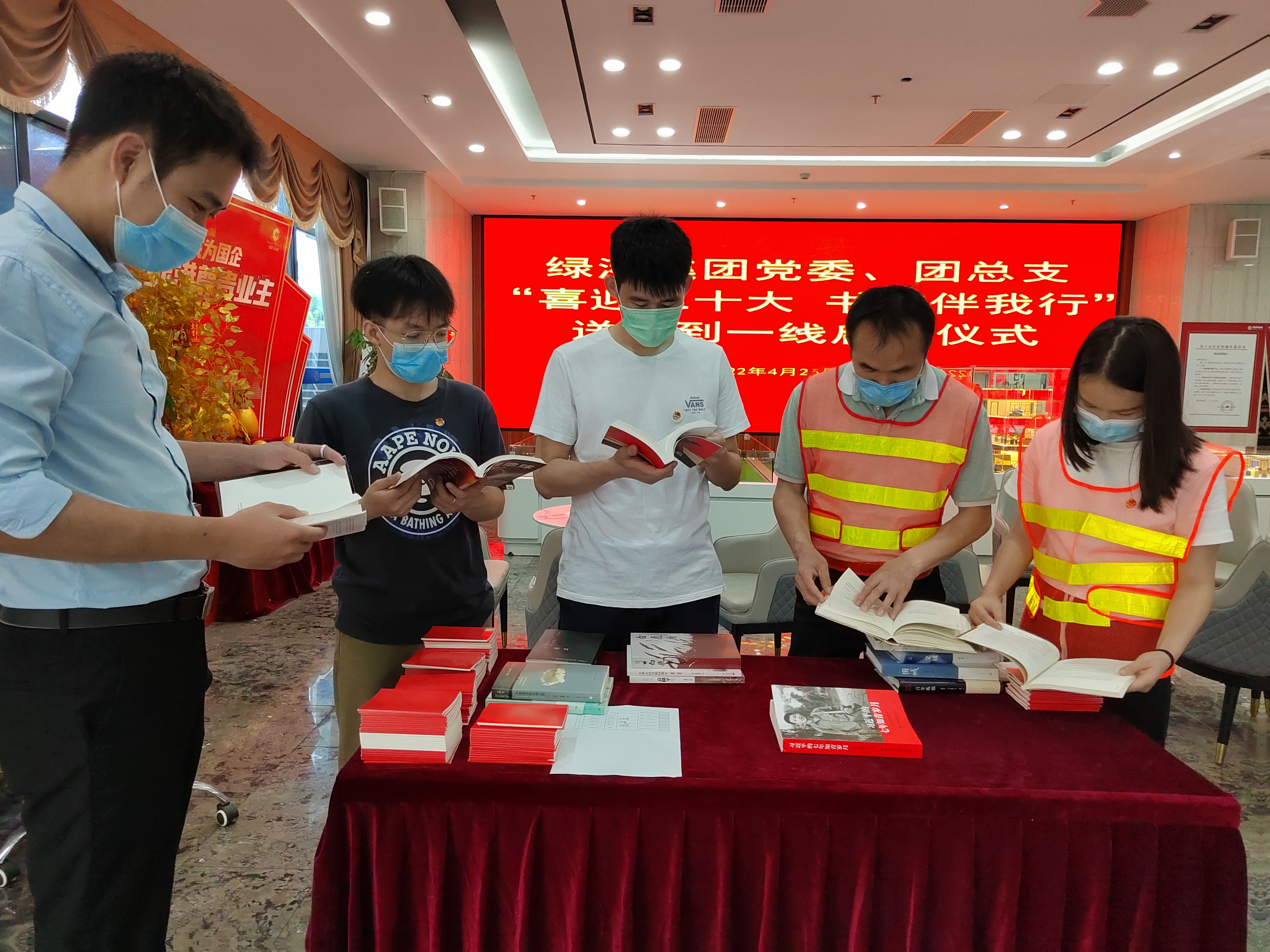 在第27個(gè)世界讀書日暨首屆全民閱讀大會(huì)舉辦之際,為營造濃厚的讀書氛圍,綠港集團(tuán)黨委、團(tuán)總支以“喜迎二十大 書香伴我行”為主題,組織黨員代表及青年團(tuán)員開展送書到項(xiàng)目一線的讀書活動(dòng)。