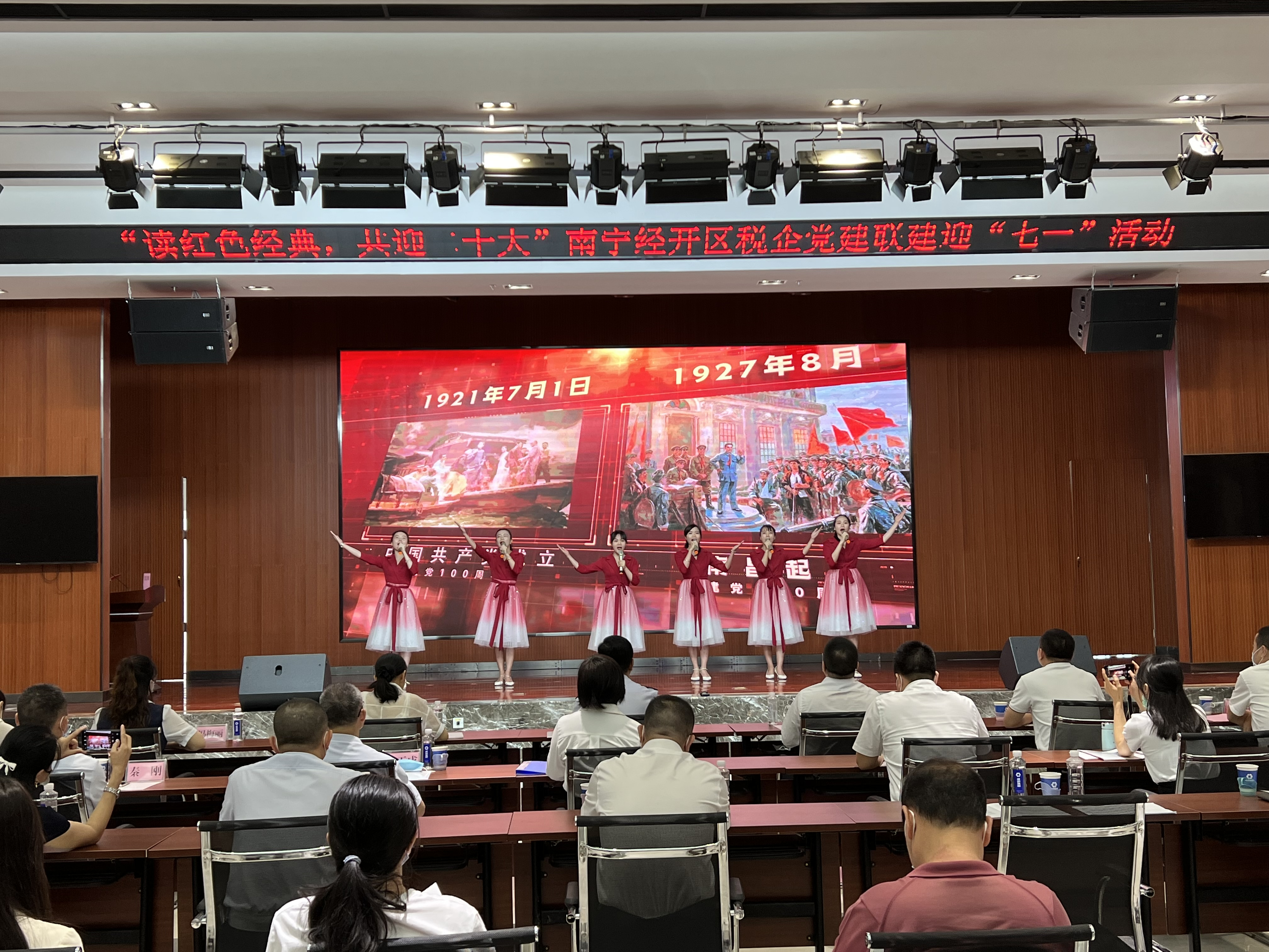 6月24日上午,綠港集團(tuán)黨委與南寧經(jīng)開區(qū)稅務(wù)局黨委、南寧經(jīng)開區(qū)商會黨委、南寧經(jīng)開區(qū)組織部黨支部、南寧經(jīng)開區(qū)黨群工作局黨支部等7個共建單位在創(chuàng)意產(chǎn)業(yè)園9樓會議室開展“慶‘七一’誦讀紅色家書 汲取奮進(jìn)力量 喜迎二十大”為主題的黨建聯(lián)建活動。