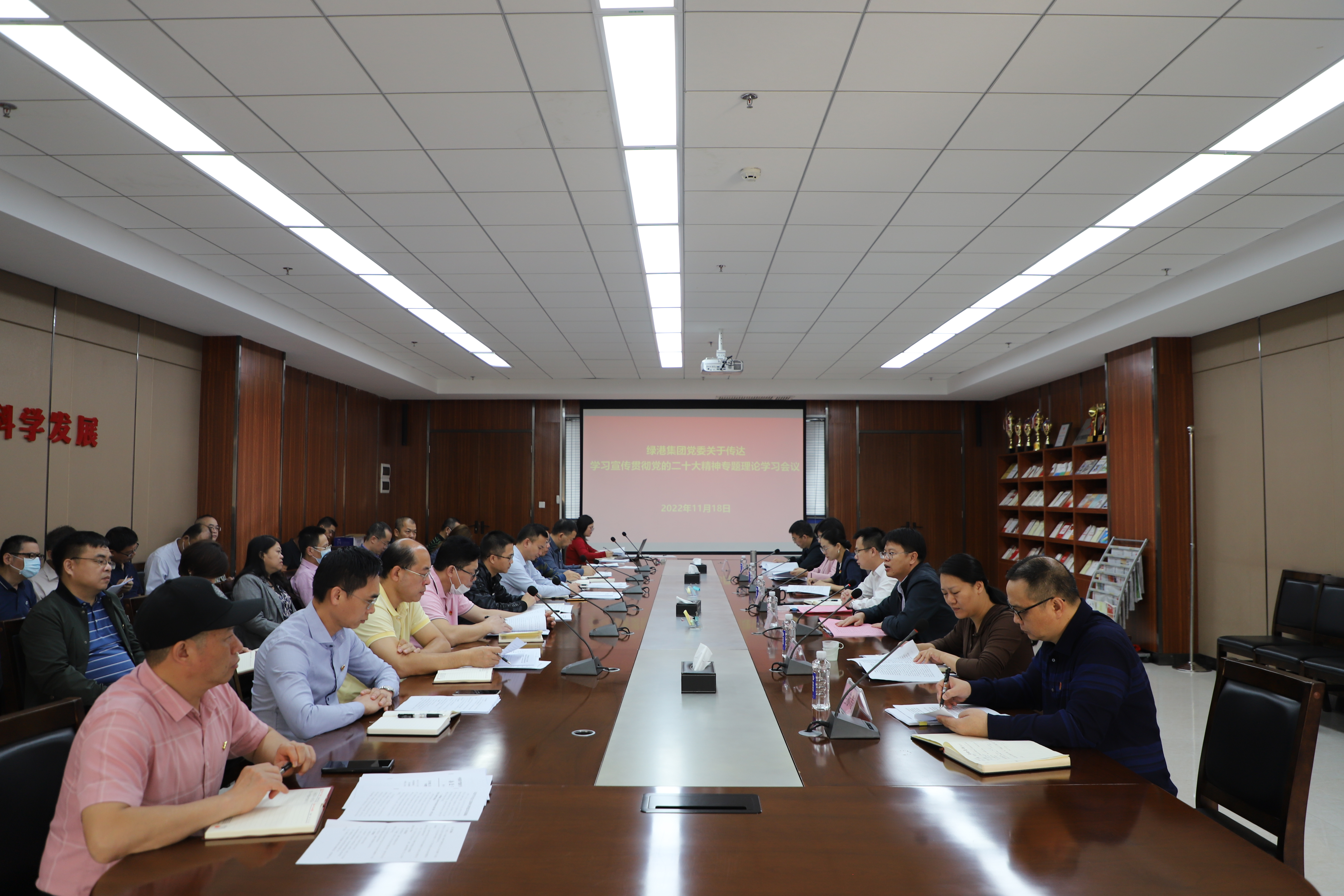 為深入學(xué)習(xí)宣傳貫徹黨的二十大精神,進(jìn)一步學(xué)習(xí)領(lǐng)會習(xí)近平總書記參加廣西代表團(tuán)討論時(shí)的重要講話精神和視察廣西“4·27”重要講話精神和對廣西工作系列重要指示要求,組織開展好綠港集團(tuán)黨的二十大精神宣講工作,近日,綠港集團(tuán)黨委組織召開黨的二十大精神專題理論學(xué)習(xí)會,集團(tuán)領(lǐng)導(dǎo)班子及各部門、各子公司負(fù)責(zé)人參與會議,會議由集團(tuán)黨委書記、董事長龔國強(qiáng)主持。