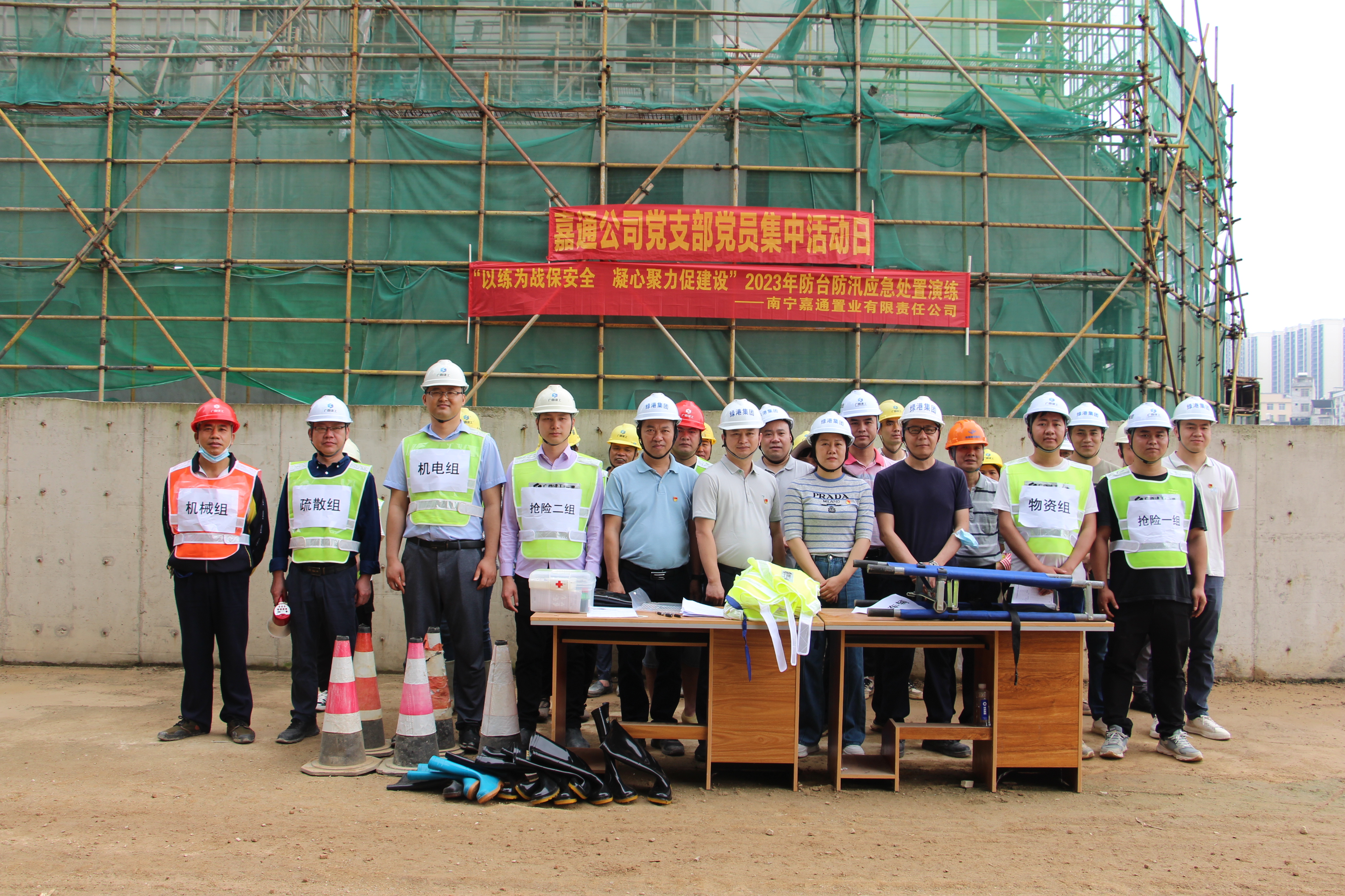 為進(jìn)一步提升項(xiàng)目管理人員應(yīng)對(duì)汛情的應(yīng)急處置能力,提高員工防臺(tái)防汛的安全意識(shí),保障項(xiàng)目現(xiàn)場(chǎng)的設(shè)備和人身財(cái)產(chǎn)安全,4月19日,嘉通公司聯(lián)合施工單位廣西建工第一建筑工程集團(tuán)有限公司在綠港·尚尊一品項(xiàng)目現(xiàn)場(chǎng)開展“以練為戰(zhàn)保安全 凝心聚力促建設(shè)”2023年防臺(tái)防汛應(yīng)急處置演練,全面筑牢安全生產(chǎn)防線。綠港集團(tuán)安全監(jiān)督部、項(xiàng)目負(fù)責(zé)人、業(yè)主代表及一線施工人員約30人參加本次活動(dòng)。集團(tuán)黨委委員、副總經(jīng)理黃麗琴到現(xiàn)場(chǎng)觀摩指導(dǎo)并作防臺(tái)防汛工作部署。嘉通公司黨支部書記、總經(jīng)理何小勇在演練前致辭。