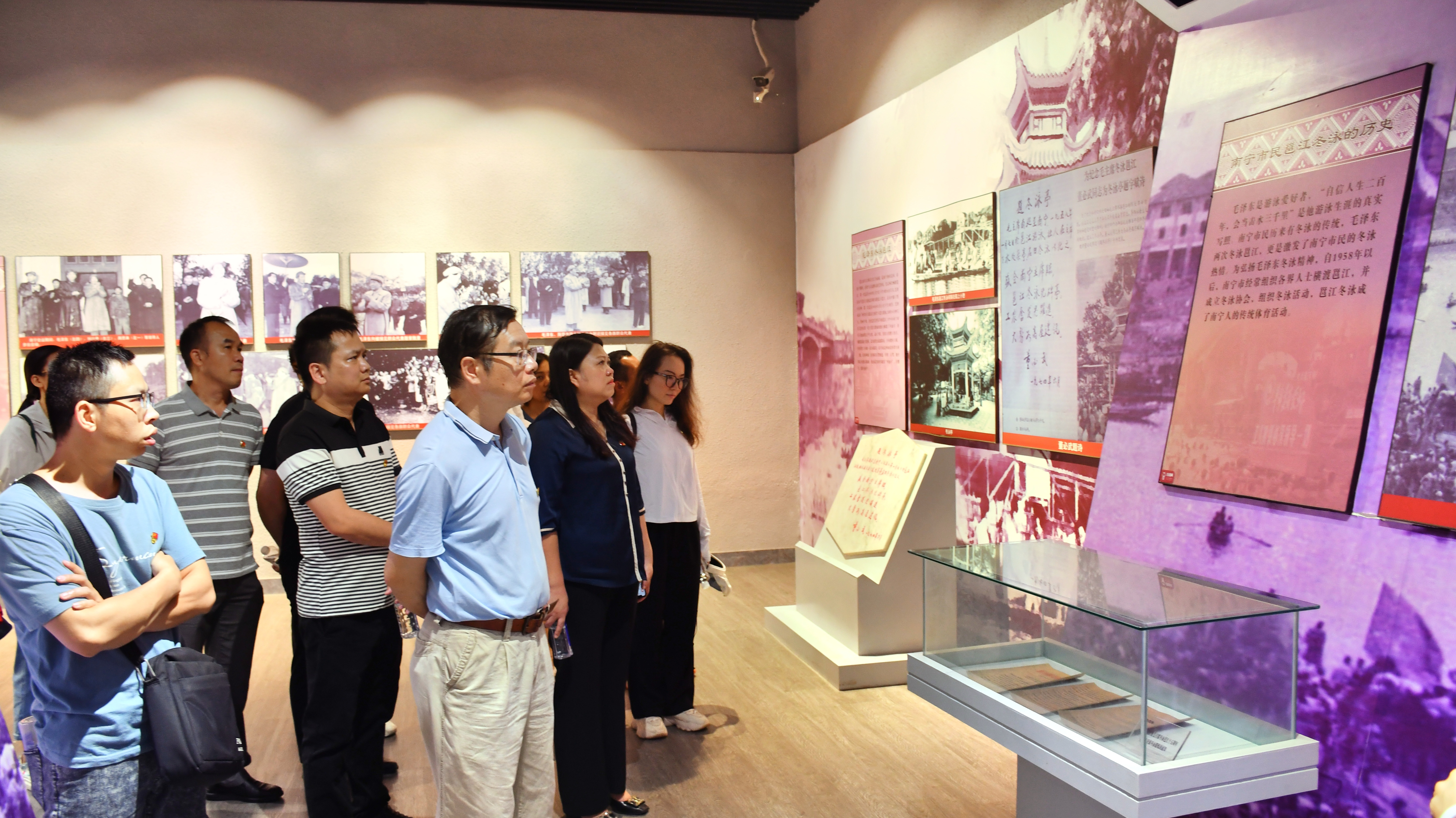 走進(jìn)紀(jì)念館大門,一塊浮雕作品映入眼簾,它再現(xiàn)了1958年毛澤東主席在人民公園望仙坡接見廣西各族人民代表的壯觀場(chǎng)景。時(shí)隔60多年,追尋偉人的足跡,我們一起回憶那段激動(dòng)人心的光輝歲月。紀(jì)念館通過(guò)實(shí)物、圖片、文字資料的組合,配以聲、光、色等現(xiàn)代科技手段,展示了1958年1月毛澤東主席在南寧主持召開中央工作會(huì)議期間,接見廣西各族人民代表,對(duì)廣西地方經(jīng)濟(jì)發(fā)展作出高瞻遠(yuǎn)矚指導(dǎo)的活動(dòng)情況,以及劉少奇、周恩來(lái)等黨和國(guó)家領(lǐng)導(dǎo)人指導(dǎo)廣西社會(huì)主義現(xiàn)代化建設(shè)的歷程。黨員們跟隨著一幅幅照片回顧了人民公園、邕江河畔、軍區(qū)禮堂等毛澤東主席在廣西的歷史足跡和廣西發(fā)展歷史。參與主題參觀學(xué)習(xí)的黨員紛紛表示:“講解員的解說(shuō)非常讓人心潮澎湃,參觀活動(dòng)是思想上的傳承,激勵(lì)我們帶著這份信念和力量,追隨偉人的足跡,把南寧建設(shè)得更加美好。”