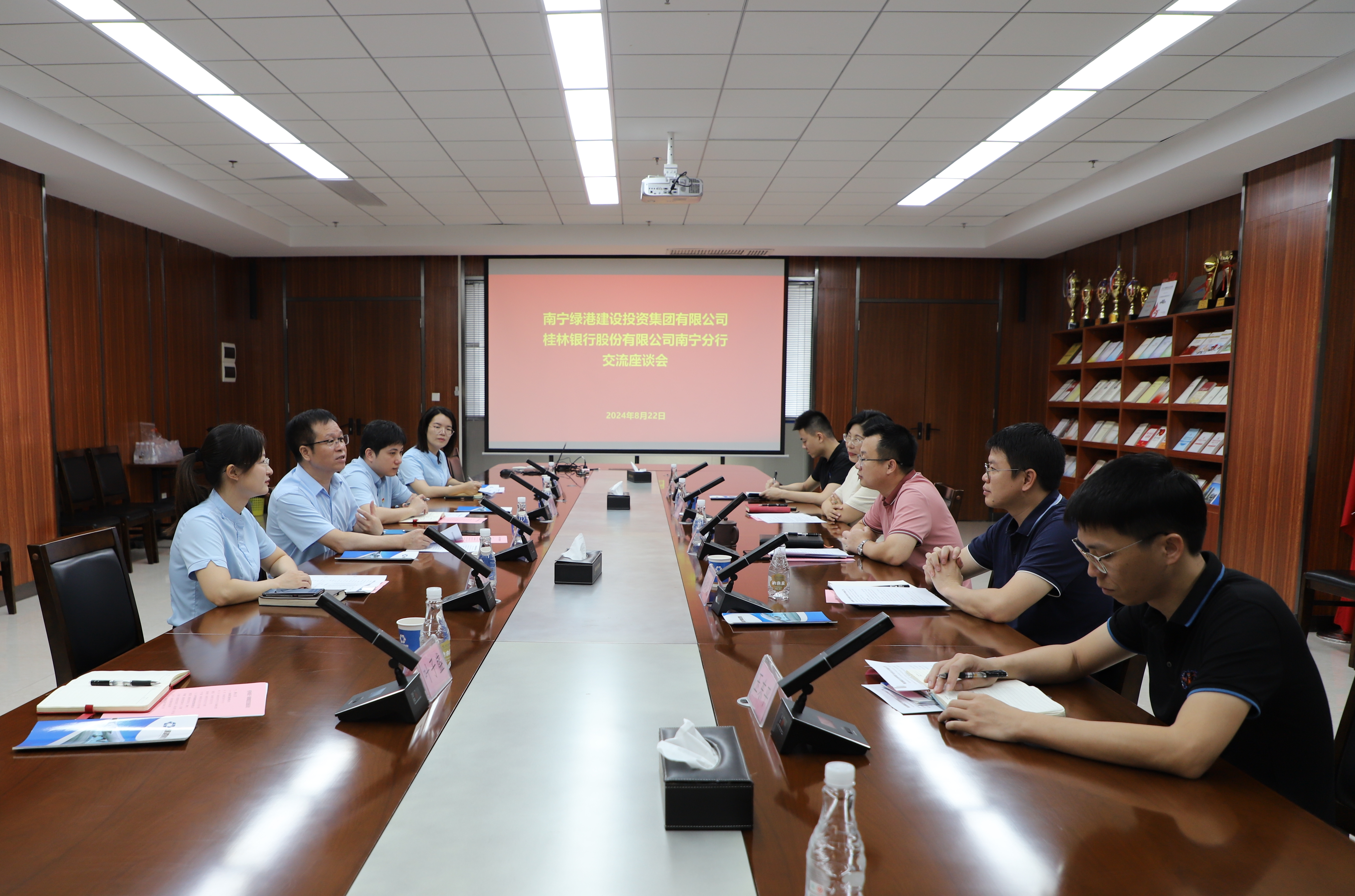 8月22日,綠港集團黨委書記、董事長龔國強與到訪的桂林銀行南寧分行行長馮軍一行,就進一步深化銀企合作事宜進行座談交流。綠港集團黨委副書記、總經(jīng)理鄧繼慧,黨委委員、副總經(jīng)理、財務(wù)總監(jiān)關(guān)月娥及融資管理部相關(guān)人員參加座談。