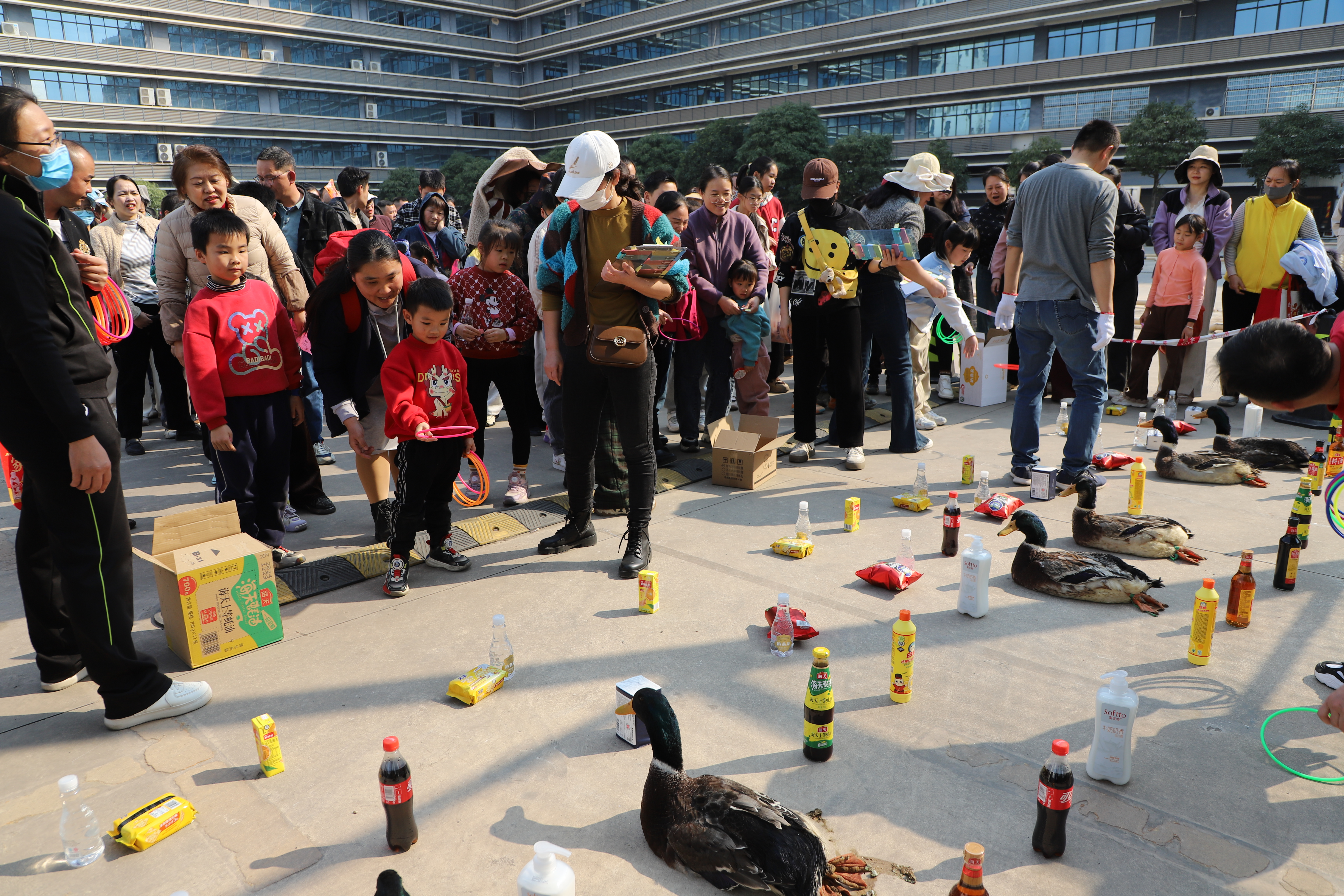 “套圈”游戲區(qū)內(nèi),參與者們紛紛展示著自己的技巧,試圖將手中的圓圈準確地套中目標。“太好了!我套中了鴨子!”一位參與者瞄準目標,輕輕一拋,圓圈穩(wěn)穩(wěn)當當?shù)芈湓诹?/span>鴨頭上,引來周圍人的一片喝彩。