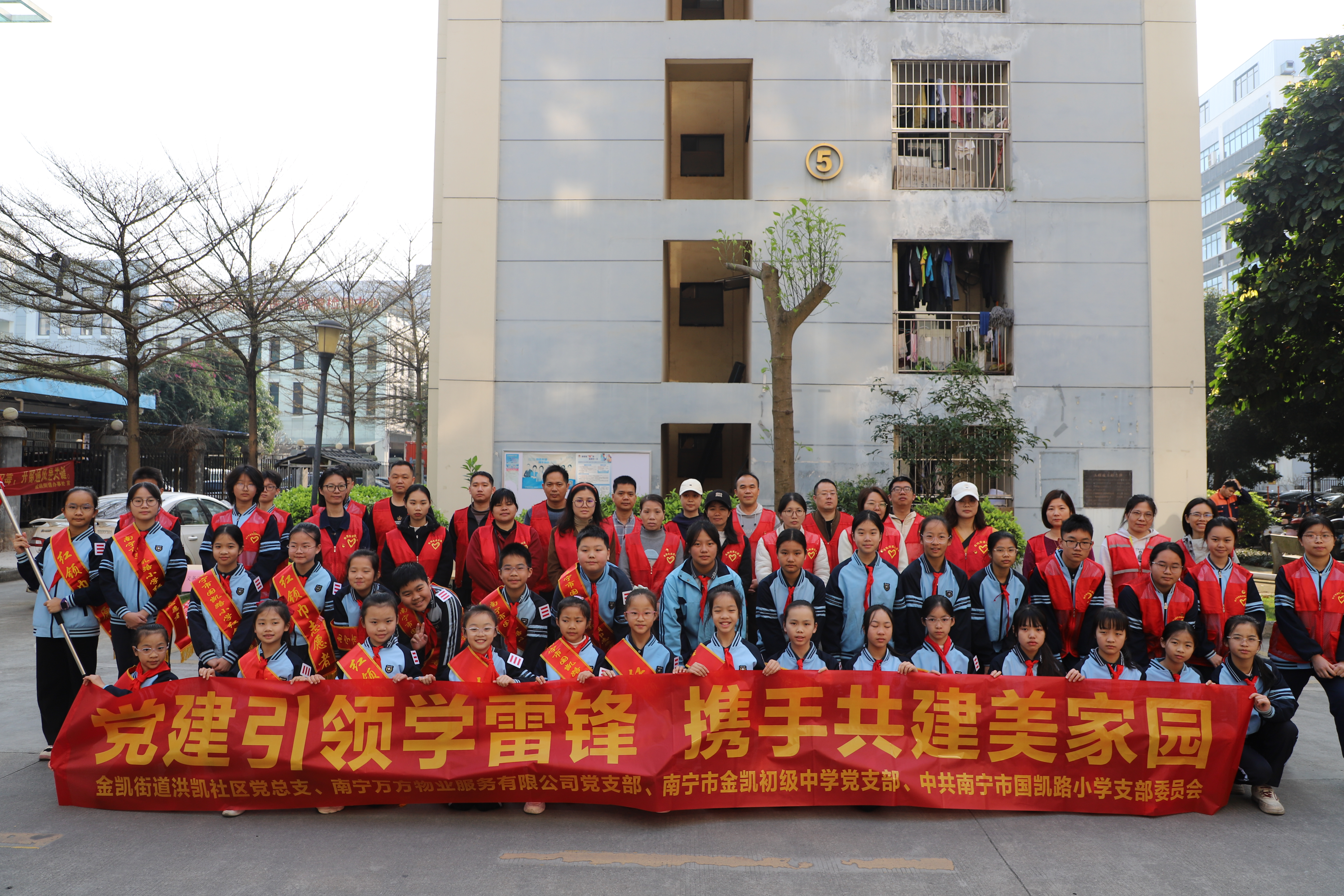 三月春風(fēng)送溫暖,雷鋒精神永相傳。為弘揚(yáng)“奉獻(xiàn)、友愛(ài)、互助、進(jìn)步”的志愿精神,深刻把握雷鋒精神的時(shí)代內(nèi)涵,3月5日,在第63個(gè)學(xué)雷鋒紀(jì)念日,五象經(jīng)開產(chǎn)業(yè)投資集團(tuán)黨委聯(lián)合金凱街道洪凱社區(qū)黨總支、南寧市金凱初級(jí)中學(xué)黨支部、中共南寧市國(guó)凱路小學(xué)支部委員會(huì)在金凱工業(yè)園物業(yè)服務(wù)中心共同開展“黨建引領(lǐng)學(xué)雷鋒 攜手共建美家園”主題志愿服務(wù)活動(dòng)。
