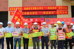 - 6月19日下午,集團(tuán)黨委書記、董事長(zhǎng)、總經(jīng)理龔國(guó)強(qiáng)帶領(lǐng)集團(tuán)領(lǐng)導(dǎo)班子,頂著烈日、迎著熱浪,來(lái)到集團(tuán)重點(diǎn)項(xiàng)目——瑞聲科技(南寧)廠房裝修工程(二期)施工現(xiàn)場(chǎng),親切慰問(wèn)看望在炎炎夏日中奮戰(zhàn)在項(xiàng)目建設(shè)一線的“黨員先鋒隊(duì)”、“青年突擊隊(duì)”隊(duì)員及各施工班組的建設(shè)者,送去了集團(tuán)黨委、集團(tuán)工會(huì)和榮鑫公司黨支部的關(guān)心和敬意,為他們加油鼓勁、提振士氣。